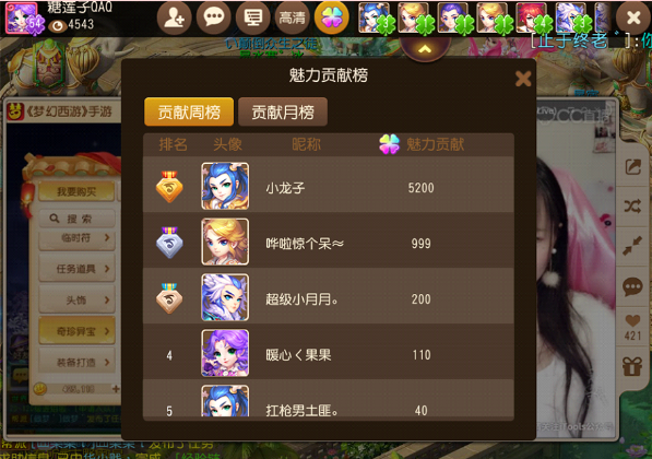 注:按照游戏魅力值排行,给予前30名游戏内奖励,按照直播产生的CC礼物积分排行,给予前3名现金奖励