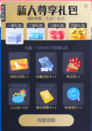 用户名单由新晋优质主播/公会提供,用户充值后领取对应礼包奖励。