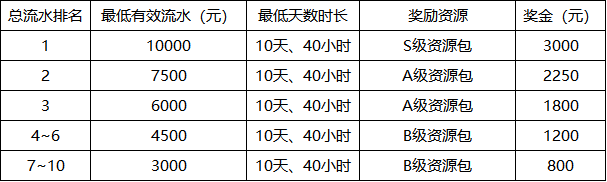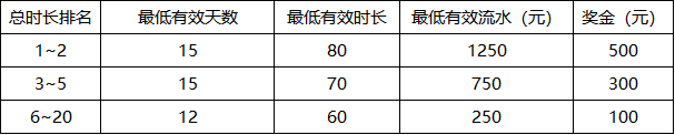 *流水激励(根据在主机单机分区总有效流水排名,领奖需满足最低10天有效天、40小时有效时长)