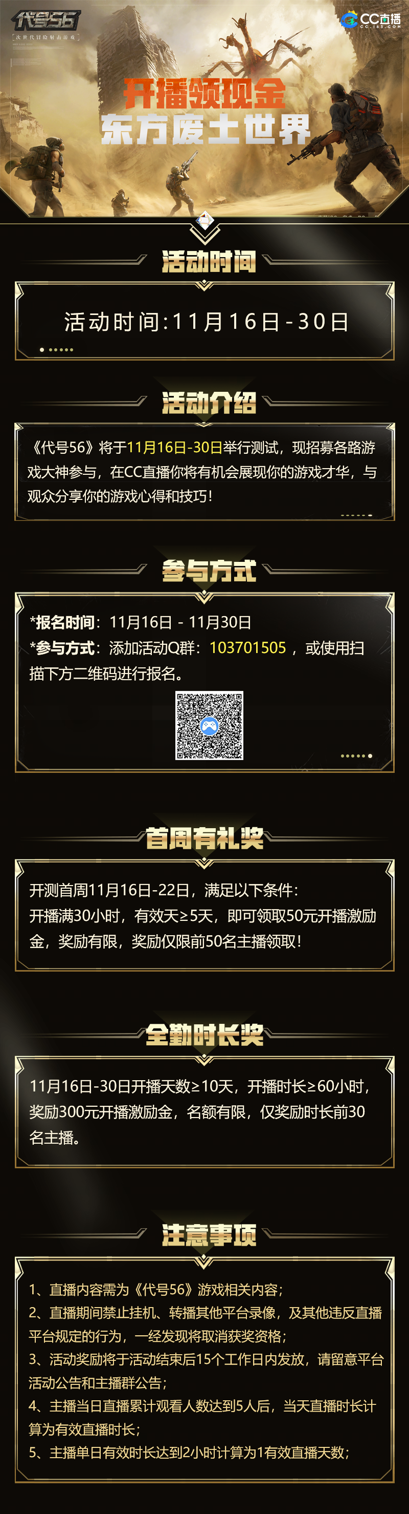 《代号56》测试主播招募活动