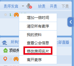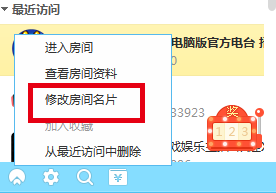 在CC主面板房间列表中选中房间,在右键菜单中选择“修改房间名片”进行设置。