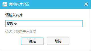 在弹出的房间名片设置窗口中,输入房间名片。点击确定后,房间成员列表中的昵称即修改为房间名片