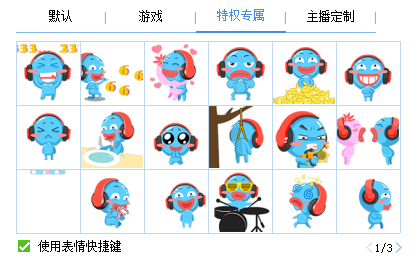 目前有默认表情、游戏表情、特权专属、主播定制4种。