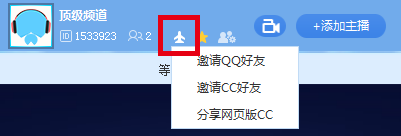 点击房间顶部的“小飞机”按钮后,选择要分享的类型,即可复制相应类型的飞机票~在对话窗口中俺ctrl+v即可分享该直播间给朋友们~