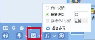 键盘按键说话: 第一次安装CC,此处显示默认按住F2键说话。 也就是说,只有你在按住F2键说话的时候,别人才能听到你说的话。
